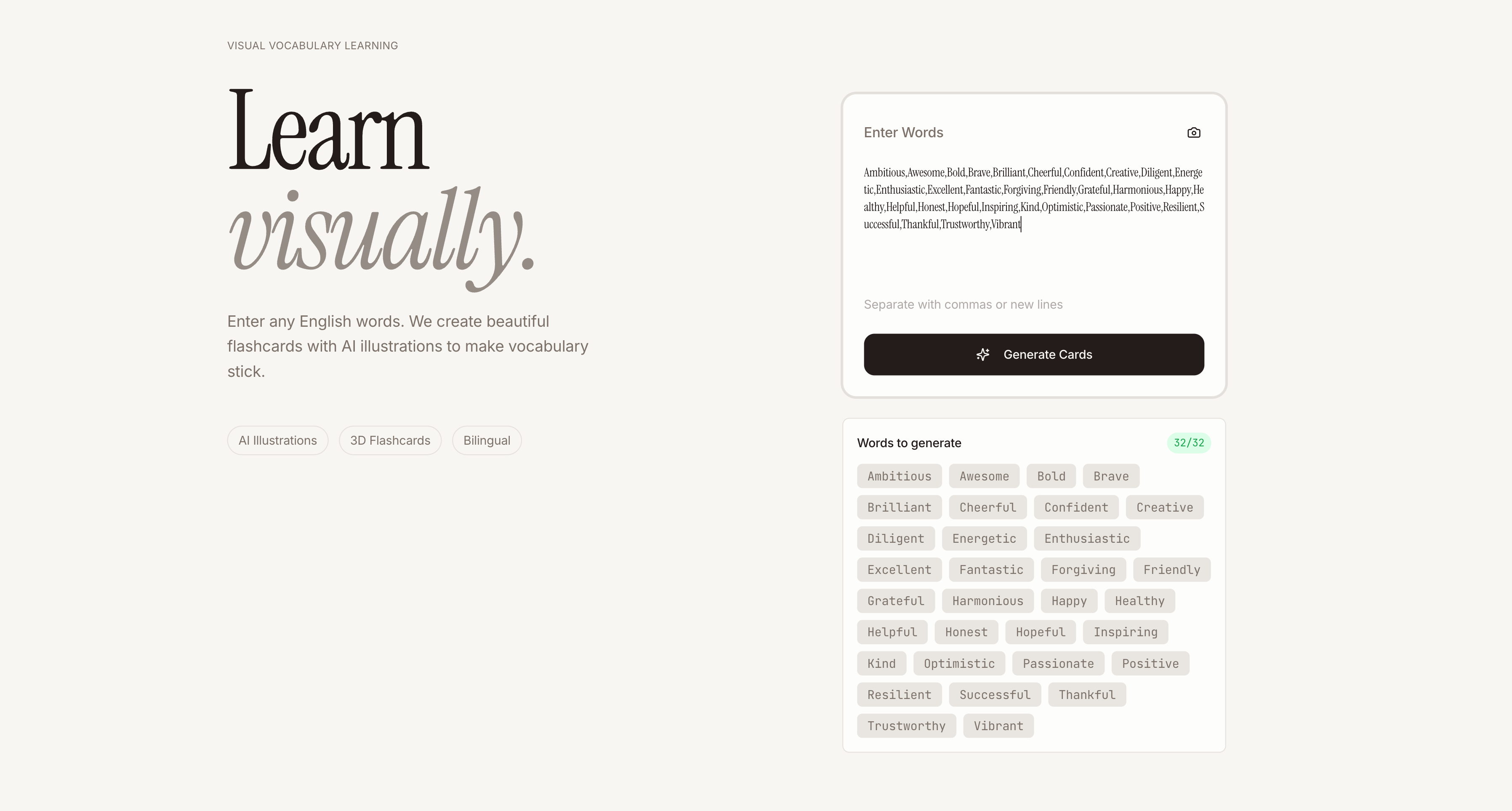 Vocabulary learning remains trapped in monotony. Text-only flashcards evaporate from memory almost instantly. Hours dissolve into manual creation. Words like “freedom” or “ambition” slip through visualization’s fingers. Students scramble. Language learners flounder. Educators yearn for something beyond mediocrity.