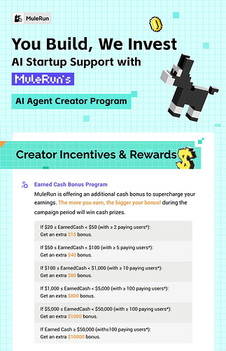 Details:MuleRun Creator Incentives (2025/10) - #2 by Bonnieshanshan