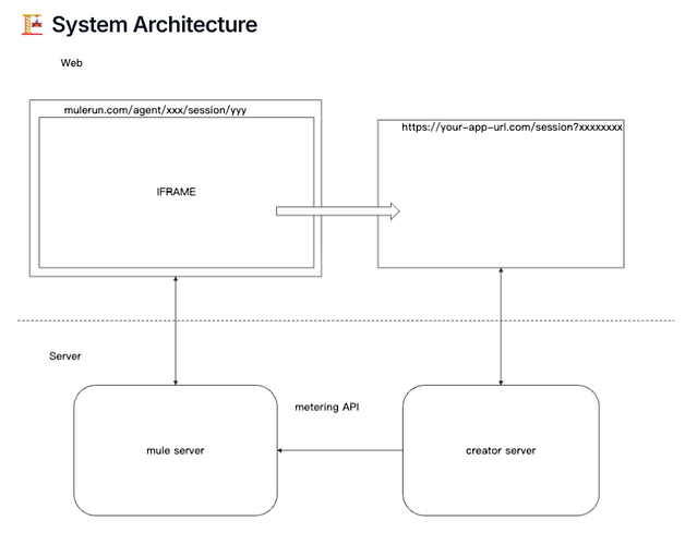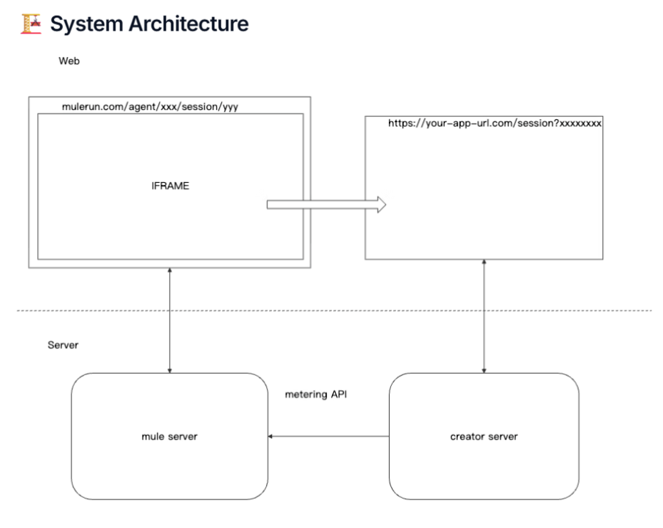 Simply put, an iframe Agent is a webpage running inside an iframe that interacts with the platform via the MuleRun API. The platform handles: