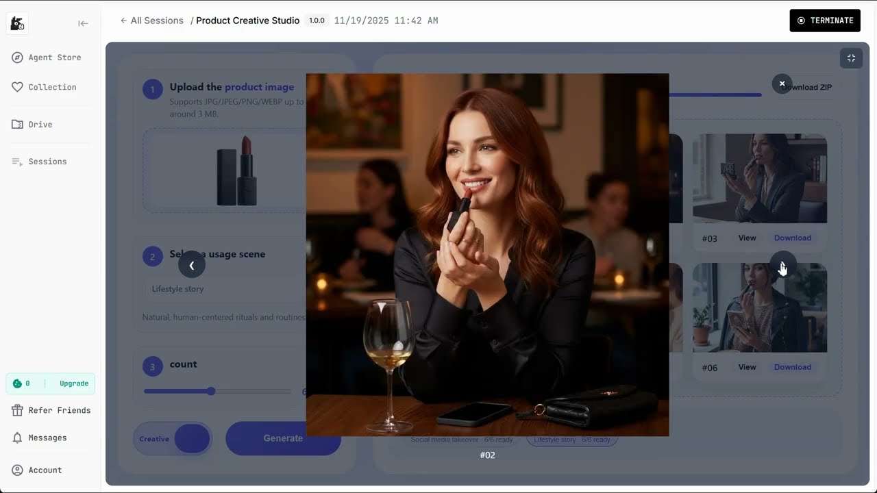 Built on the mulerun-init project, Product Creative Studio generates professional, multi-scene product marketing materials with a single click. It helps users significantly reduce photography and post-production costs, dramatically boosts creative efficiency, and enables quick selection of the best visuals from various creative options.