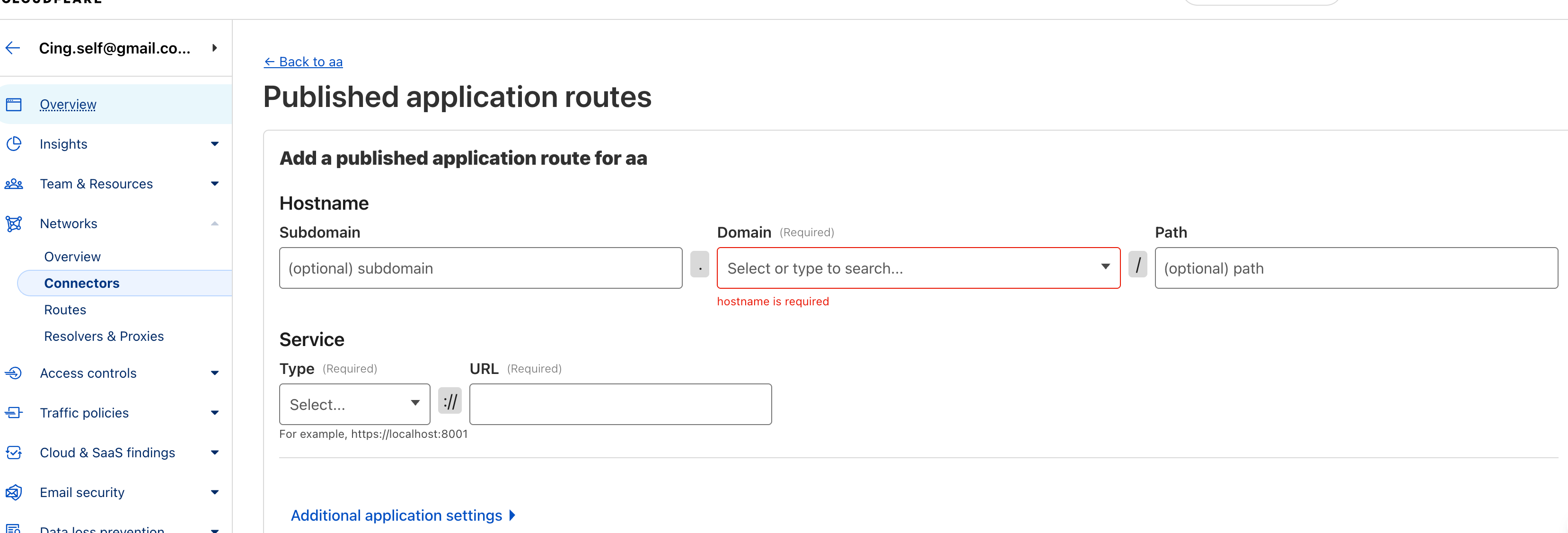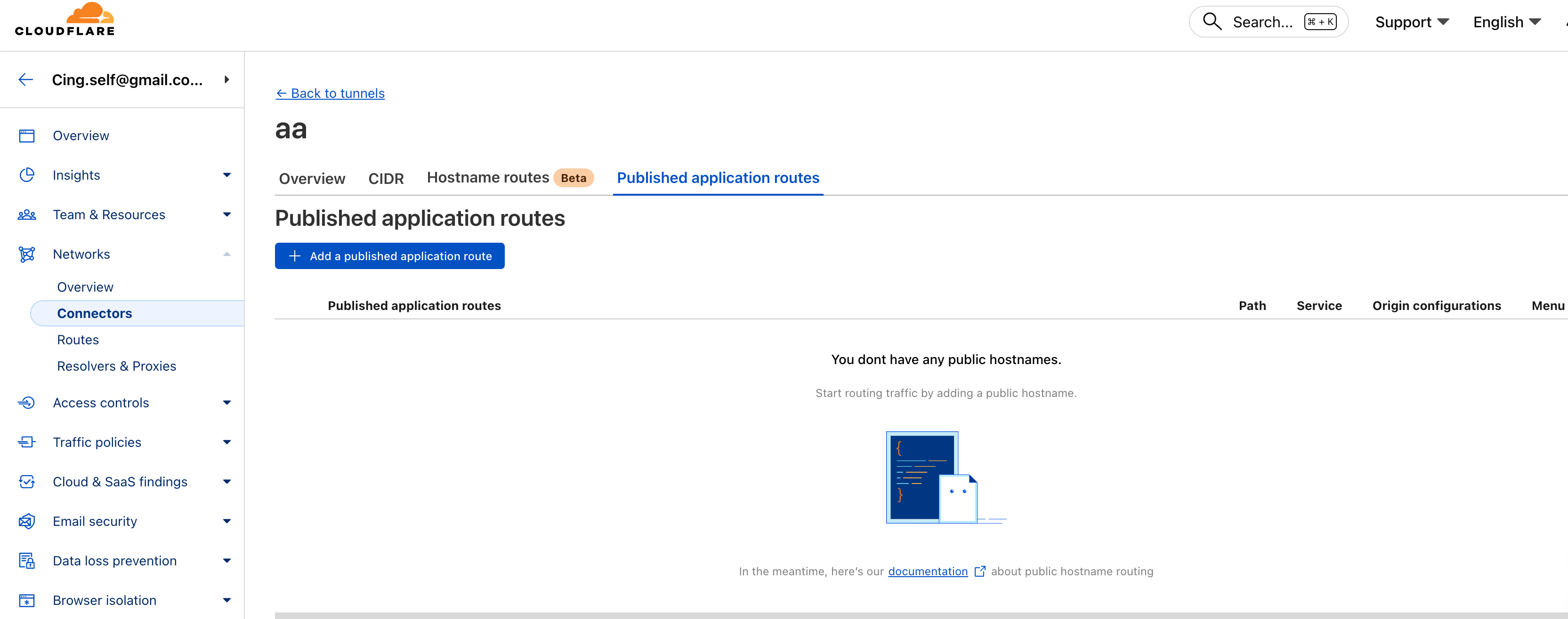 Go to Tunnels → Configuration → Public Hostname, then click Add a published application route.