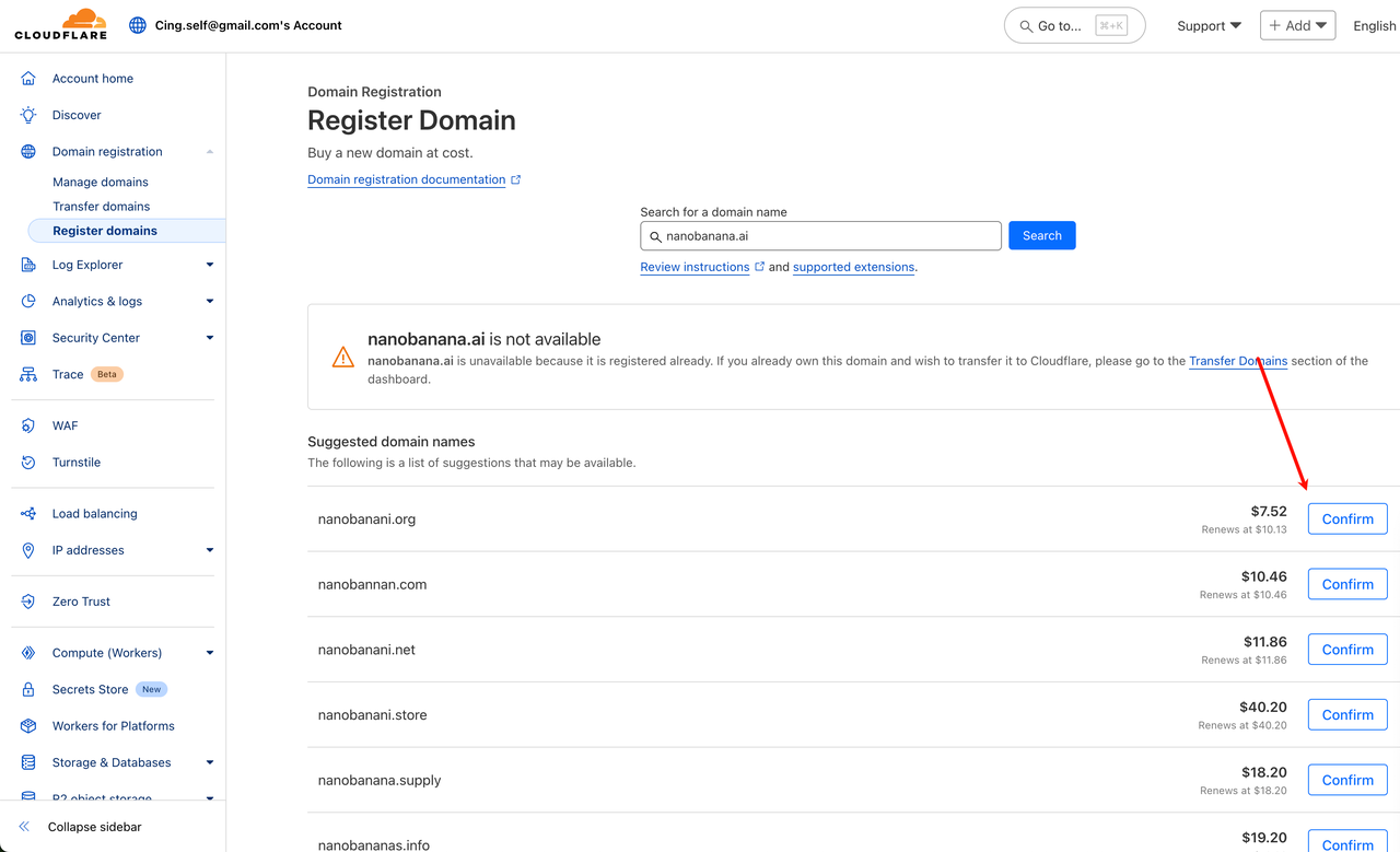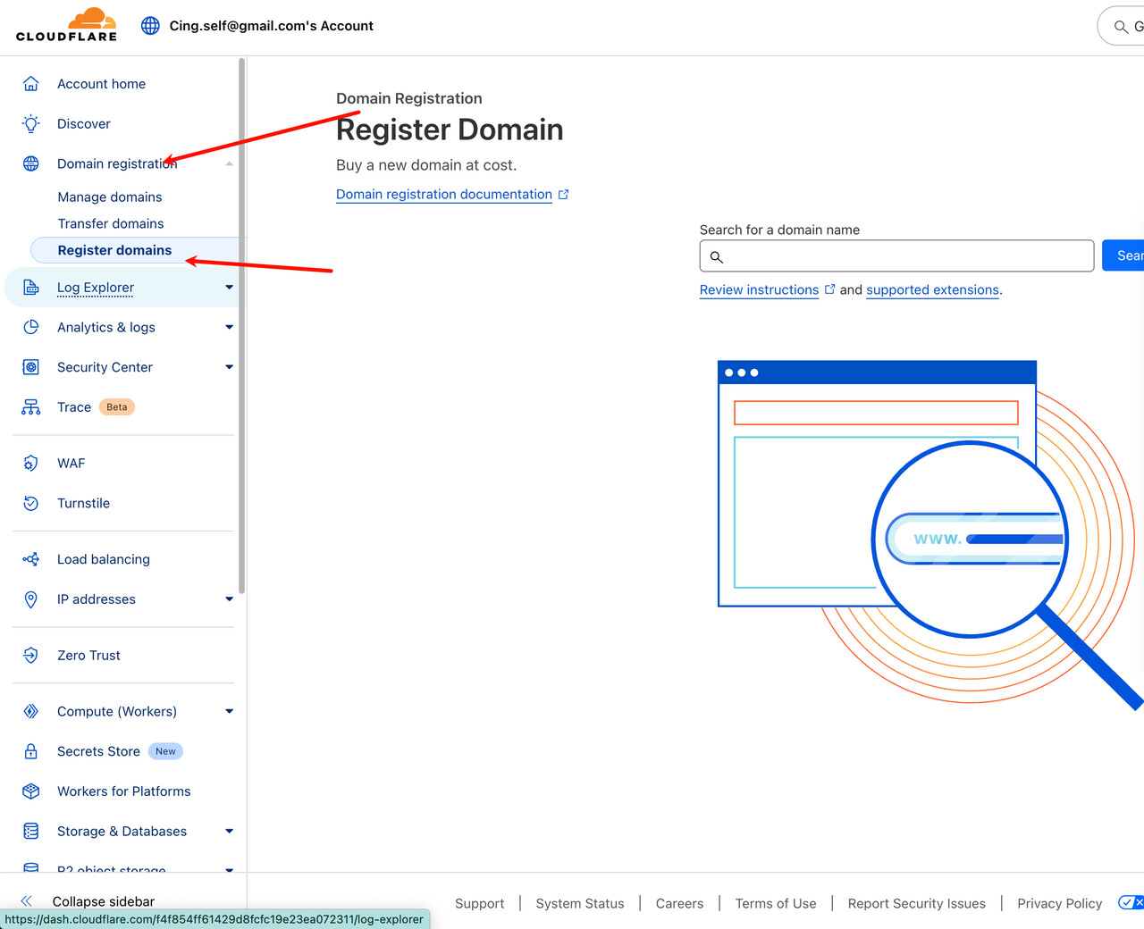 If you don’t want to rely on the free version, let’s look at how to purchase a domain on Cloudflare