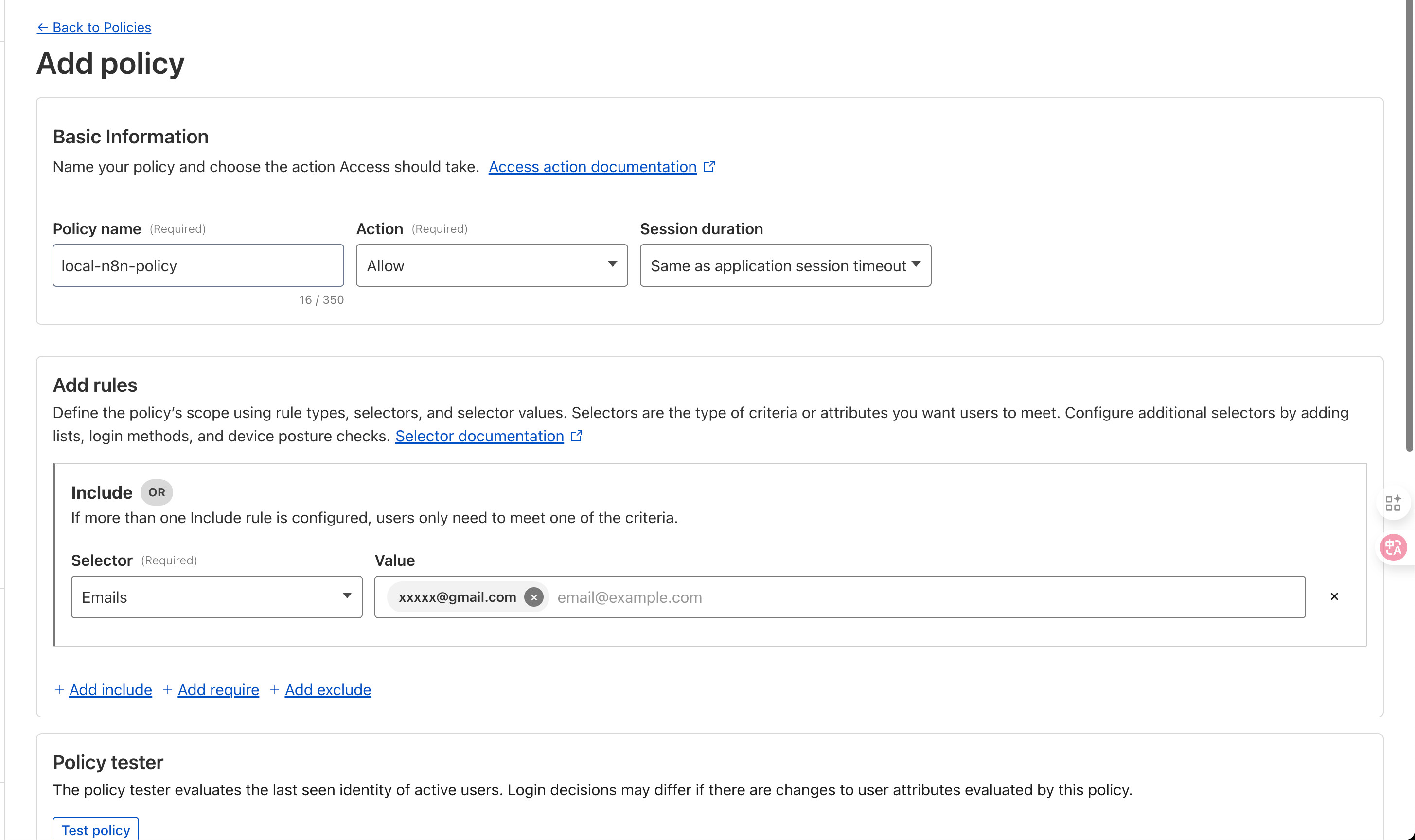 If you want to restrict access — for example, only allowing specific email addresses — you can use Cloudflare Access Policy.