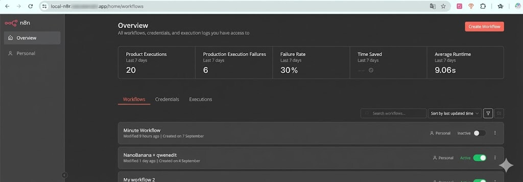 Opening the domain in your browser will take you straight to your local n8n instance.